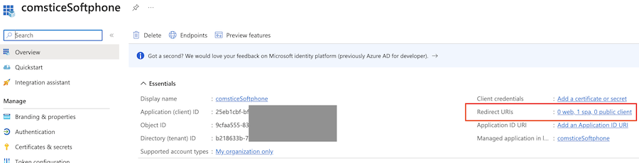 - Create a new "App Registration" as an SPA (Single Page Application). On the main view, copy clientID and tenantID.
