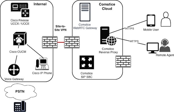 - Comstice can host solution elements and connect to your network using site-to-site VPN.