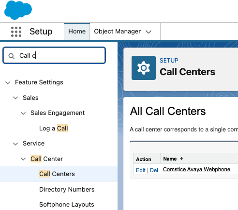 - Call Center Configuration: Go to Setup > Call Center > Configuration and create a new Call Center configuration.