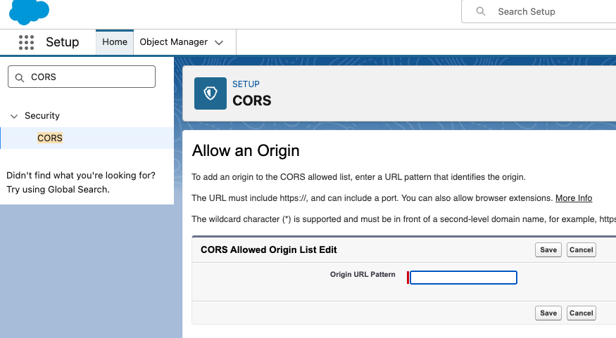 - CORS Configuration: Go to Setup > CORS and add your company's Comstice Webphone URL as an allowed cross-origin.