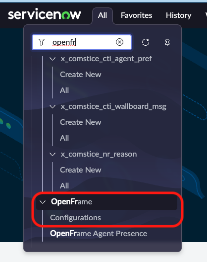 - OpenFrame Configuration: Go to OpenFrame > Configuration and create a new OpenFrame CTI configuration.