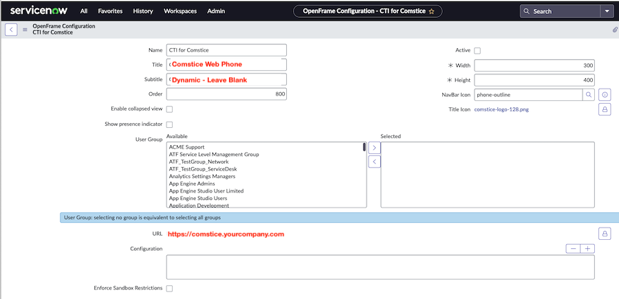 ServiceNow has an existing framework called OpenFrame which makes Comstice Webphone to be integrated easily;