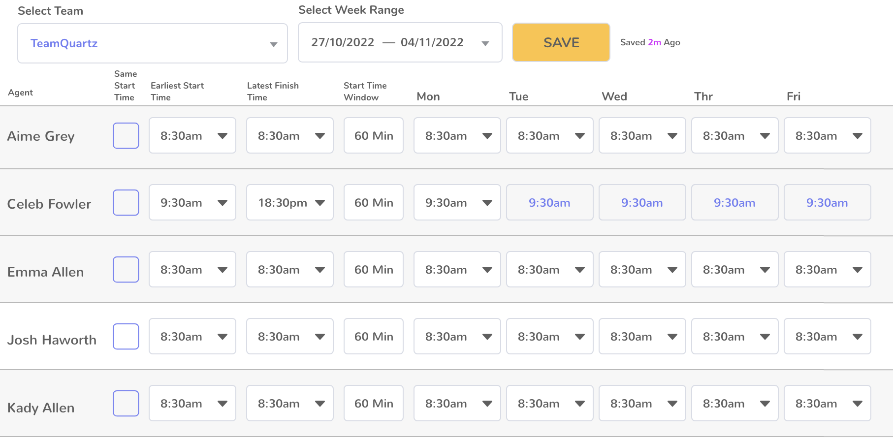 Agents may have different preferences about when to start shifts, minimum and maximum shift hours they prefer, whether they want to start at the same time every day etc. Using that information and the team calendar for their availability, you can find out the availability of the resources for the target week.