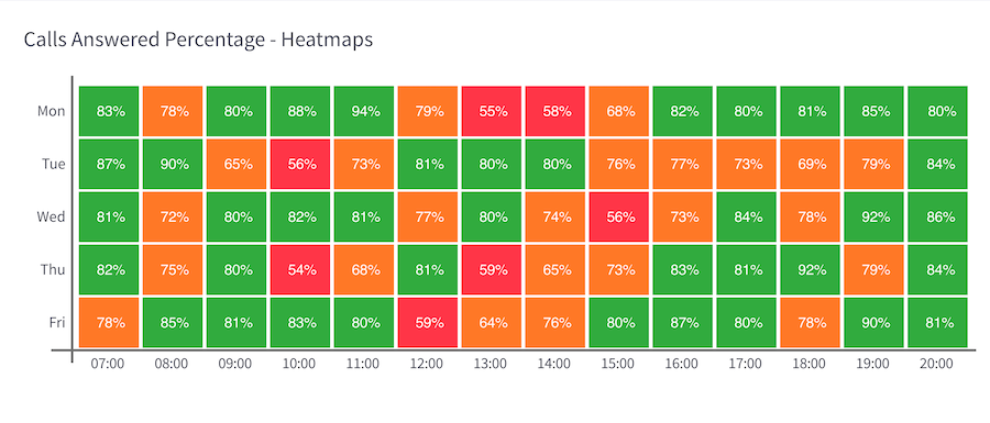 Once the daily calls received and AHT for that day are estimated, we need to distribute these forecasts for each interval. Using methods such as heatmaps as given above, you can calculate what percentage of the calls are often received at which time interval and what is the AHT percentage on each interval. Calls may be handled quicker in the mornings than in the afternoons. Running a 15-min heatmap can give you all these and you can enter the forecast data for calls received and AHT.